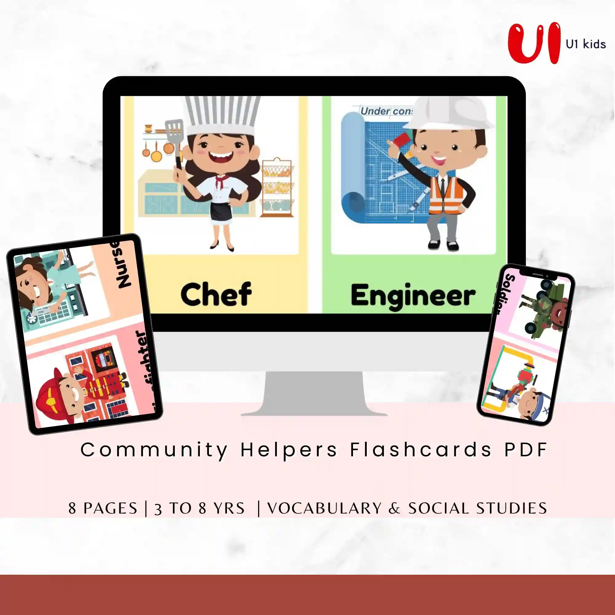 Community Helpers Flashcards PDF for Kids – 8 Pages